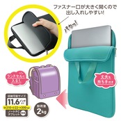 大きく開くクッション付きPCケース アクアグリーン【143023】